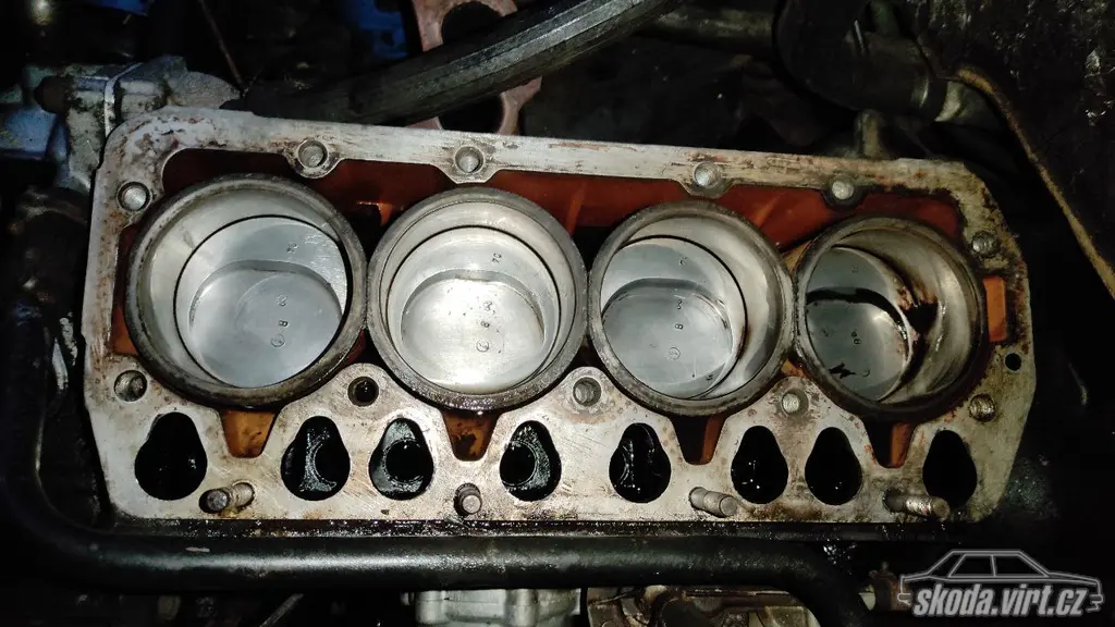 Tady čistím písty, a koukám že všechny jsou cvaklý zjevně ventilem směrem k setrváku, udělá tohle jenom vytahanej řetěz? Docela silný kafe.