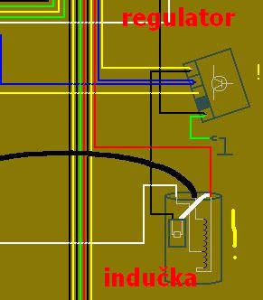 Možná jsi nemyslel regulátor, ale drát od startéru. Ten se zapojuje přímo na cívku, ale má smysl jen tehdy, když je napájení cívky zapojeno na předřadný odpor.
