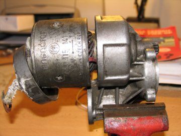 snažím se dojít na to proč se nechce točit, ale jenom vysunuje pastorek. Chtěl jsem ho rozebrat a mrknout se jak jsou na tom uhlíky, ale dál jsem se nedostal, než jak je vidět na fotce. Nemužu od sebe dostat stator, hliníkový držák a kotvu (rotor)... poraďte jak na to. popřípadě proč se nechce točit...