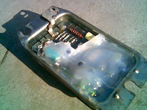 -> Mishoooo: Nepamatam i to uz presne ale tusim tam bol transil alebo take nieco takze pri prepeti alebo opacnom zpoajeni prost zhorel a pritom sa prepalil kus plosaku ktory posobil ako poistka. Ale mal som trochu novsiu jednotku so schemou na prednej strane a zaliatym mensim plosakom.